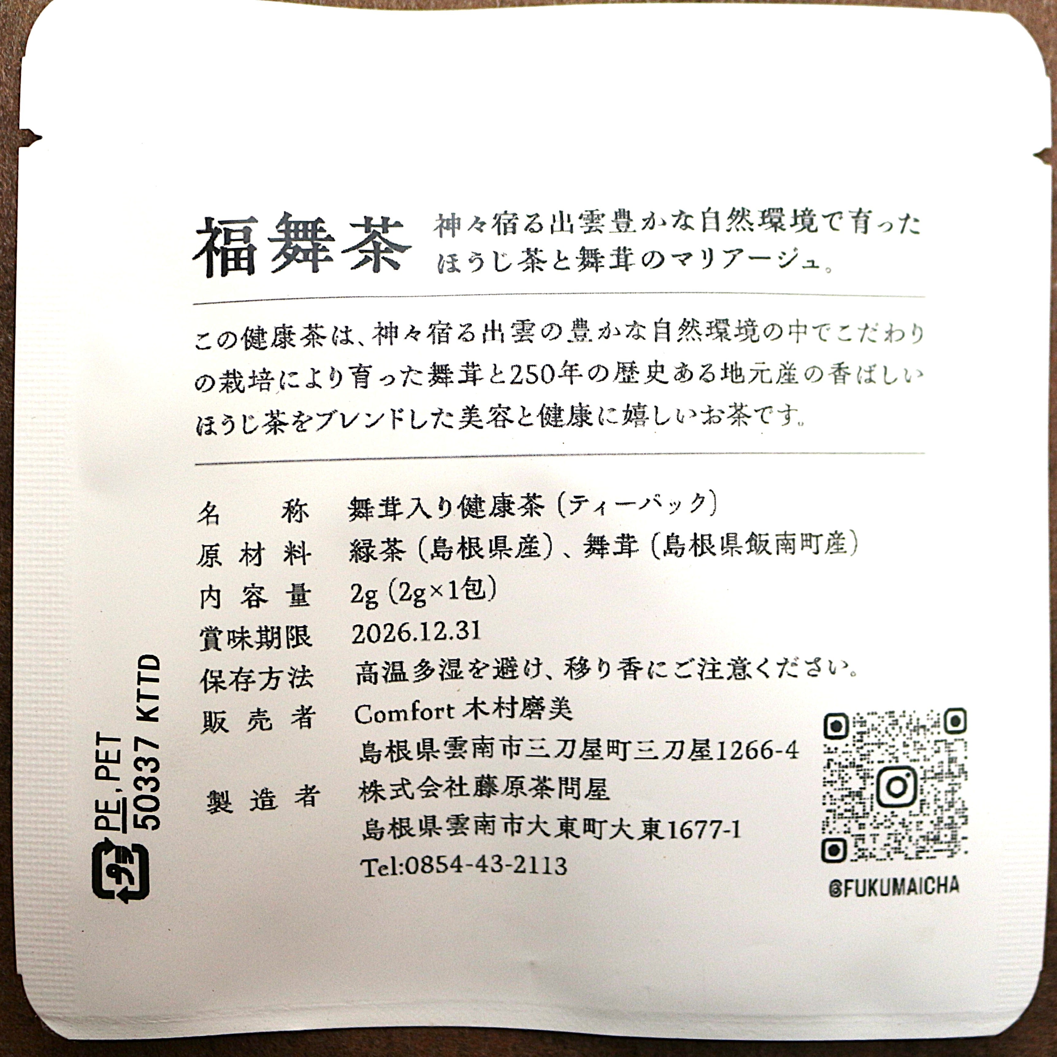 出雲の国の福舞茶(ほうじ茶 × 舞茸ブレンドティーバッグ)2g × 1包(10袋まで送料同額)