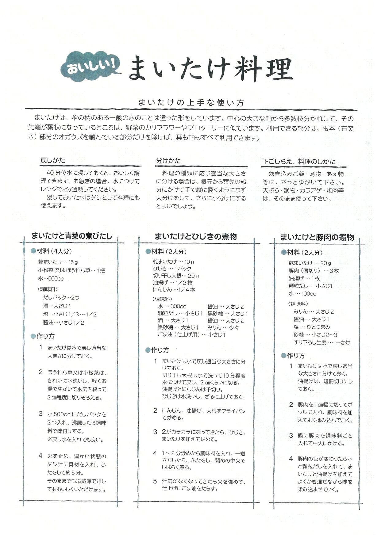 原材料名: まいたけ