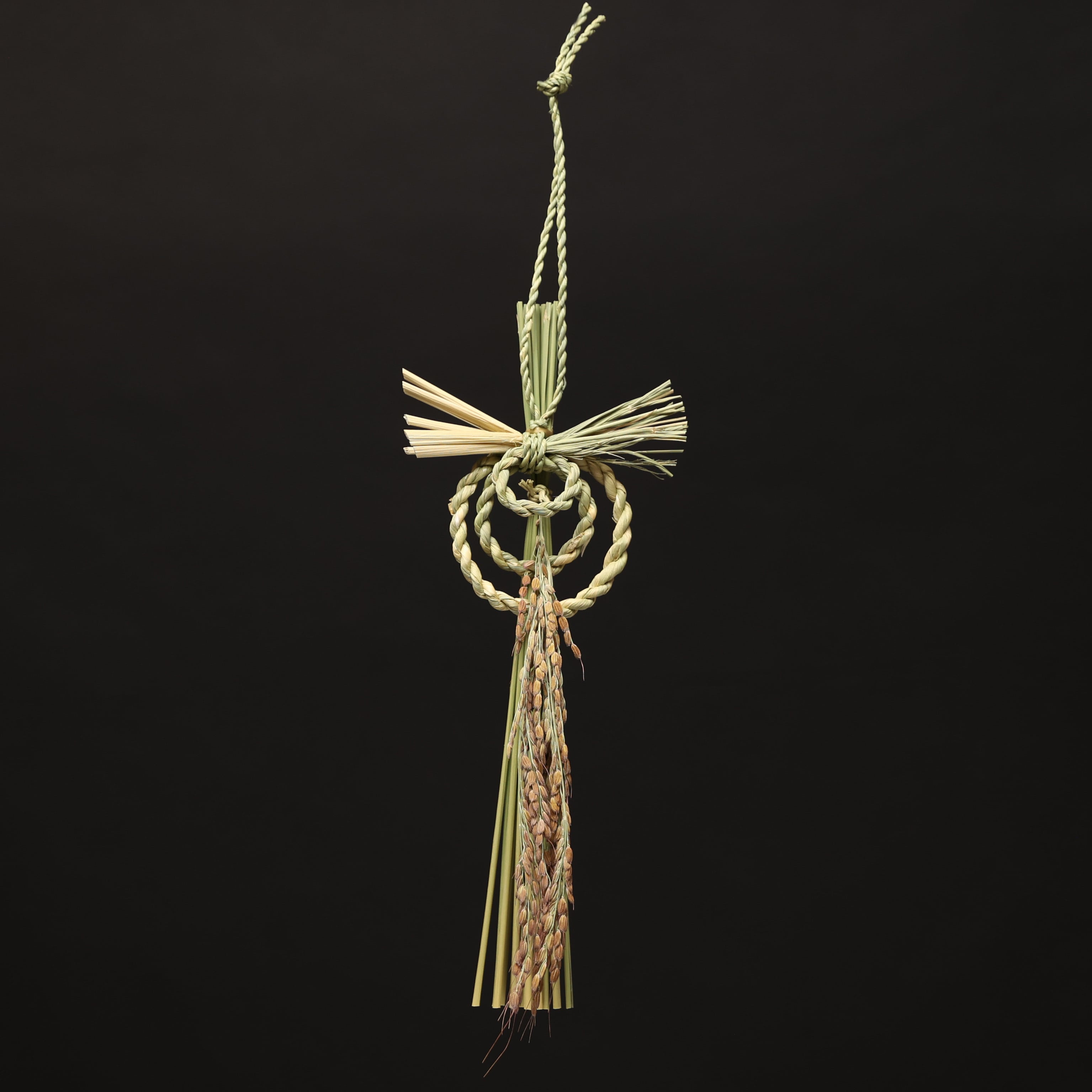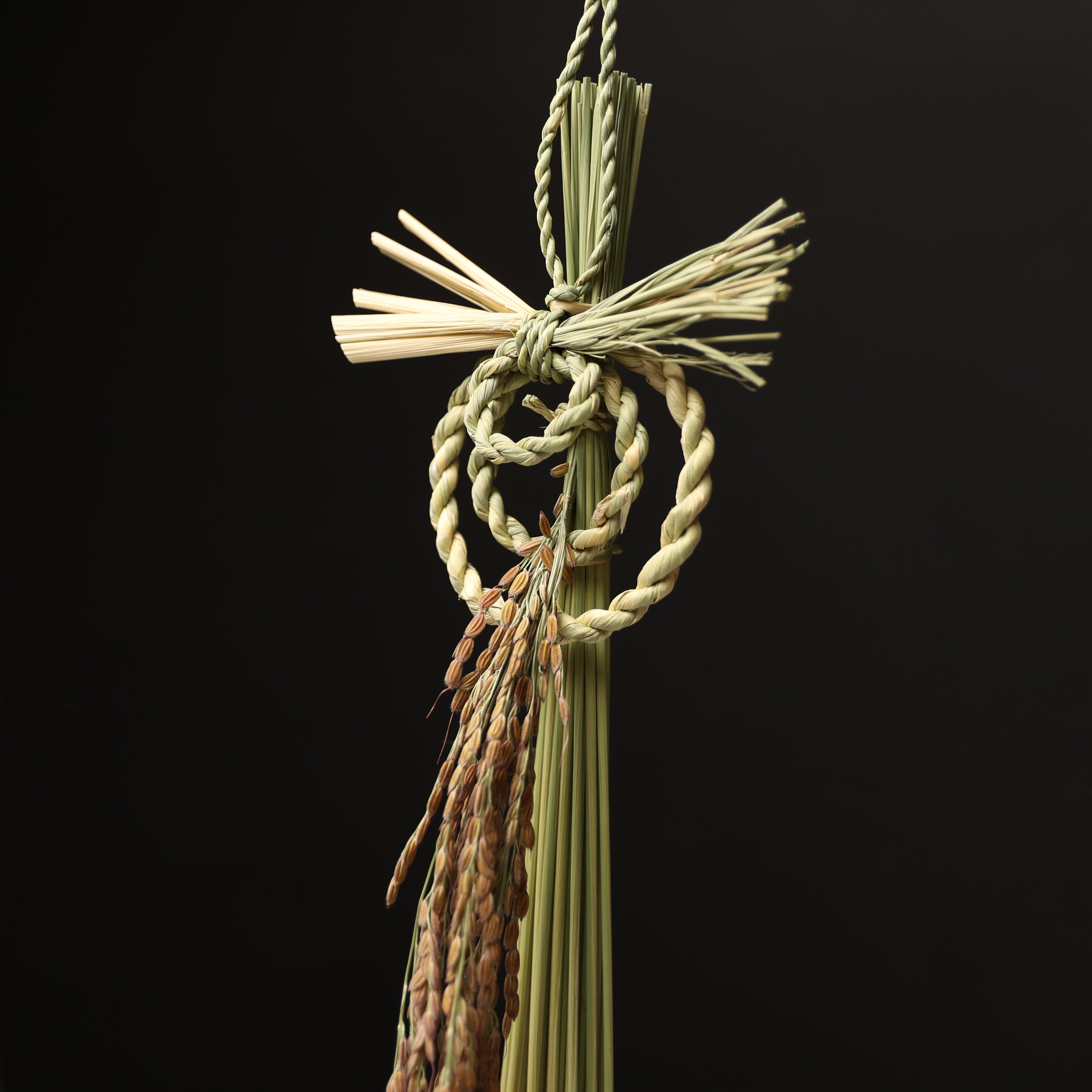 日本各地には様々なデザインのしめ飾りがありますが、当商品のような三重巻きの輪じめは珍しい一方、島根県では多くみられます。その島根らしい三重輪に飯南米の稲穂をあしらい、質素ながらも粋なデザインに仕上がりました。